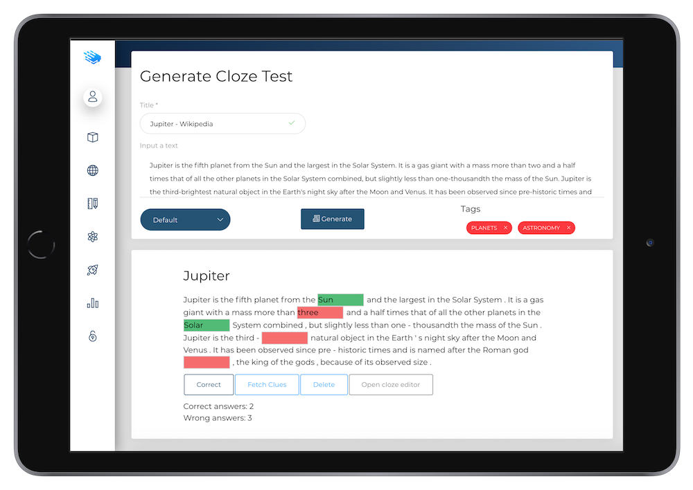 AutoLearnify automatically generates cloze tests for you where the most suitable gaps are created.